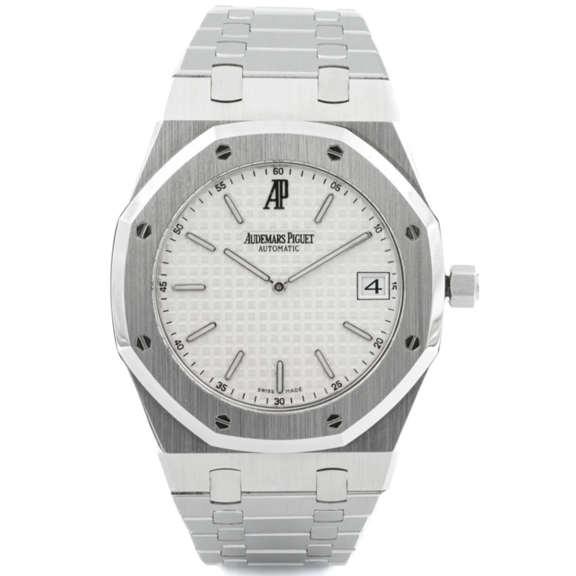 Cette Audemars Piguet Royal Oak 15202ST.OO.0944ST.01 a un cadran de baguette blanche et un bracelet en bracelet. La précision, le bon fonctionnement et l'état de cette Audemars Piguet ont été minutieusement inspectés dans notre centre de réparation Audemars Piguet certifié afin de déterminer le degré de remise en état requis pour répondre à nos normes strictes. Elle a également été comparée à nos archives afin de garantir son authenticité. Pour votre tranquillité d'esprit, toutes nos montres s'accompagnent d'une garantie de 24 mois.