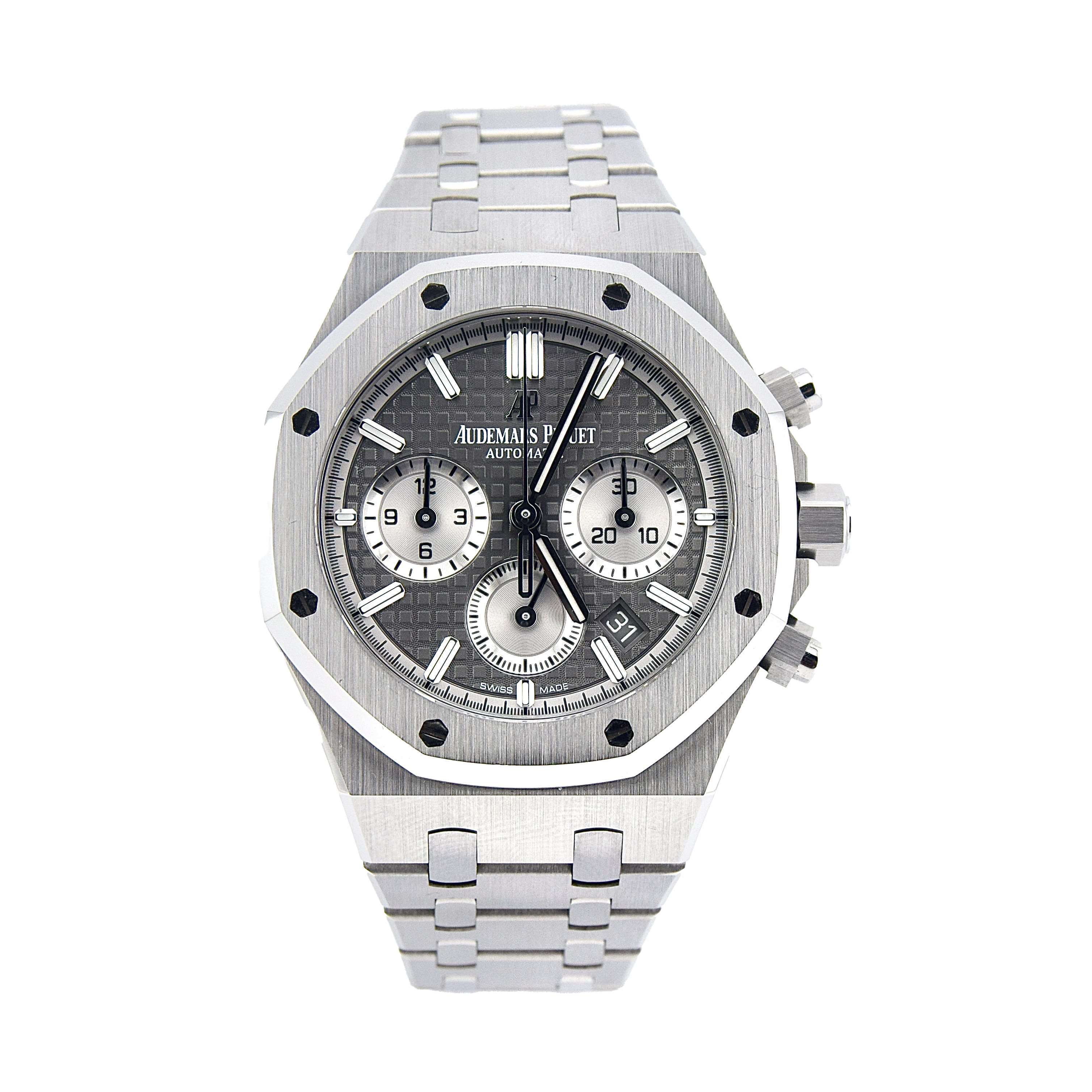 Cette Audemars Piguet Royal Oak 26315ST.OO.1256ST.02 a un cadran de baguette grise et un bracelet en bracelet. La précision, le bon fonctionnement et l'état de cette Audemars Piguet ont été minutieusement inspectés dans notre centre de réparation Audemars Piguet certifié afin de déterminer le degré de remise en état requis pour répondre à nos normes strictes. Elle a également été comparée à nos archives afin de garantir son authenticité. Pour votre tranquillité d'esprit, toutes nos montres s'accompagnent d'une garantie de 24 mois.