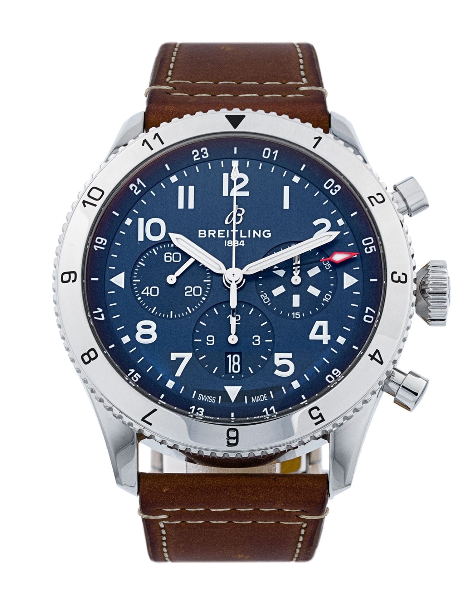 Cette Breitling Super AVI AB0445 a un cadran de bleu arabe et un bracelet en cuir. L'imperméabilité, la précision, le bon fonctionnement et l'état de cette Breitling ont été minutieusement inspectés afin de déterminer le degré de remise en état requis pour répondre à nos normes strictes. Nous avons également étudié sa documentation technique et les archives du fabricant, quand cela s'est avéré possible, afin de garantir l'authenticité de la montre et son passé irréprochable. Pour votre tranquillité d'esprit, nos montres s'accompagnent d'une garantie de 24 mois, ainsi que de toute période restante sur la garantie du fabricant couvrant un produit neuf ou révisé.