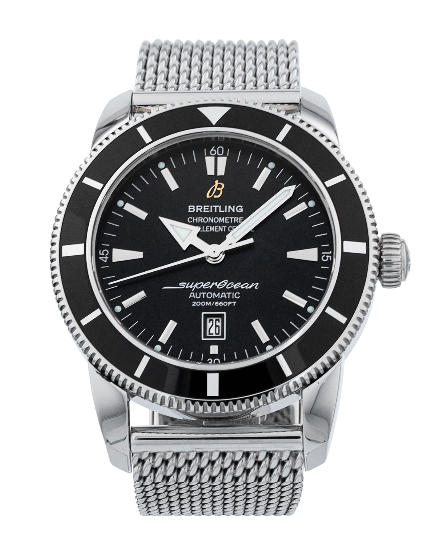Cette Breitling SuperOcean Heritage A17320 a un cadran de baton noire et un bracelet en bracelet. L'imperméabilité, la précision, le bon fonctionnement et l'état de cette Breitling ont été minutieusement inspectés afin de déterminer le degré de remise en état requis pour répondre à nos normes strictes. Nous avons également étudié sa documentation technique et les archives du fabricant, quand cela s'est avéré possible, afin de garantir l'authenticité de la montre et son passé irréprochable. Pour votre tranquillité d'esprit, toutes nos montres s'accompagnent d'une garantie de 24 mois.