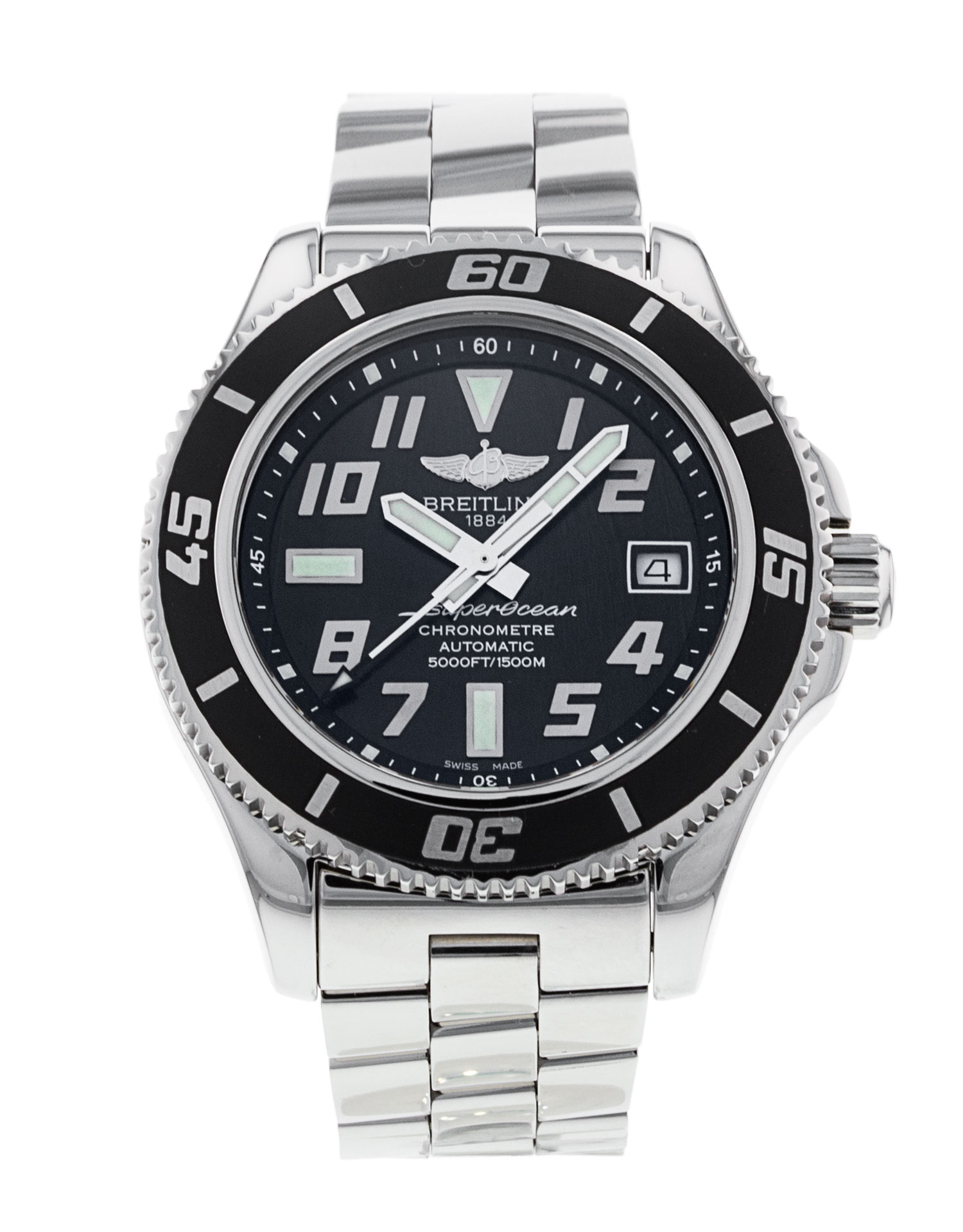 Cette Breitling SuperOcean II A17364 a un cadran de noir & argent arabe et un bracelet en bracelet. L'imperméabilité, la précision, le bon fonctionnement et l'état de cette Breitling ont été minutieusement inspectés afin de déterminer le degré de remise en état requis pour répondre à nos normes strictes. Nous avons également étudié sa documentation technique et les archives du fabricant, quand cela s'est avéré possible, afin de garantir l'authenticité de la montre et son passé irréprochable. Pour votre tranquillité d'esprit, toutes nos montres s'accompagnent d'une garantie de 24 mois.