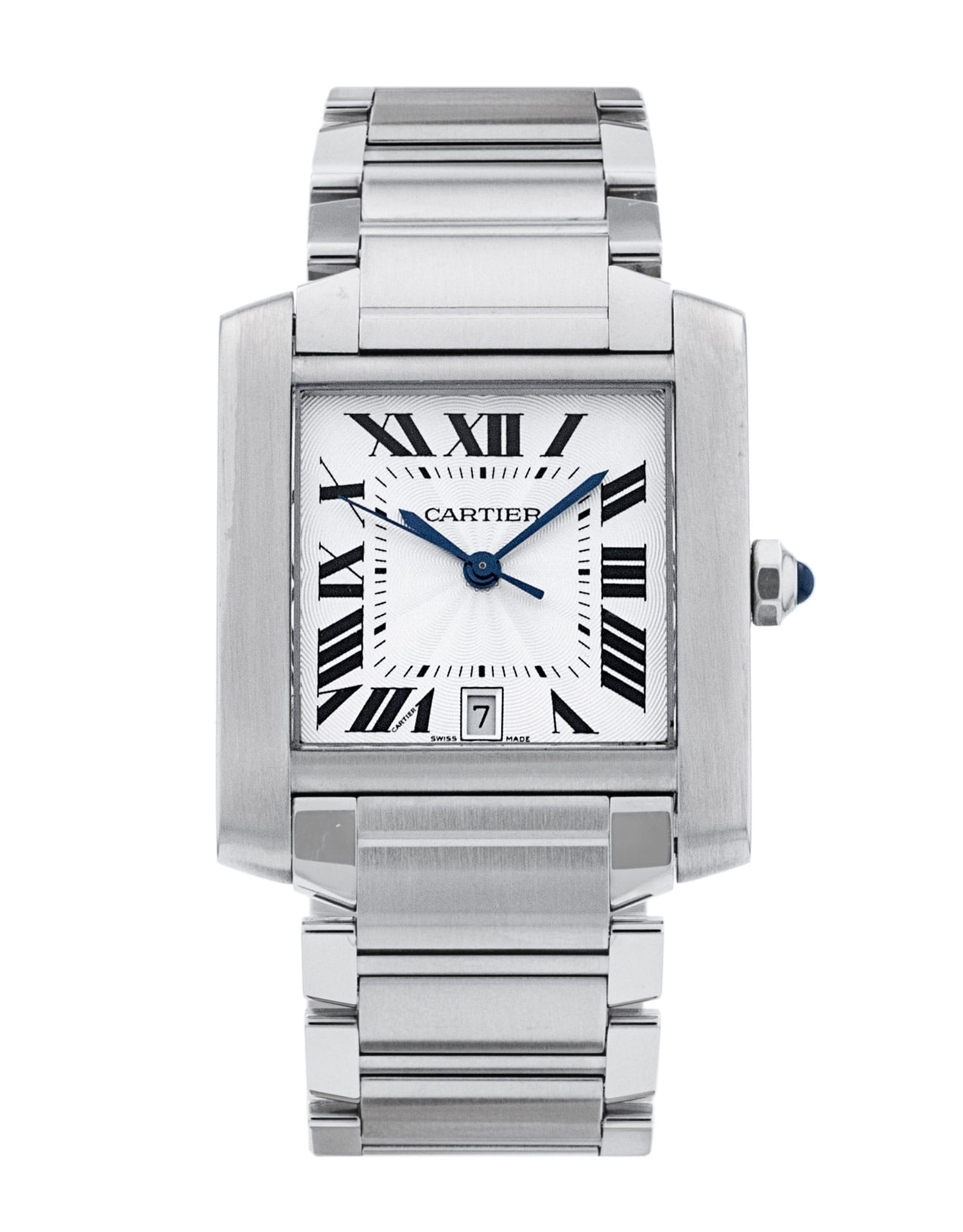 Cette Cartier Tank Francaise W51002Q3 a un cadran de argent à chiffres romains et un bracelet en bracelet. La précision, le bon fonctionnement et l'état de cette Cartier ont été minutieusement inspectés dans notre centre de réparation Cartier certifié afin de déterminer le degré de remise en état requis pour répondre à nos normes strictes. Elle a également été comparée à nos archives afin de garantir son authenticité. Pour votre tranquillité d'esprit, toutes nos montres s'accompagnent d'une garantie de 24 mois.