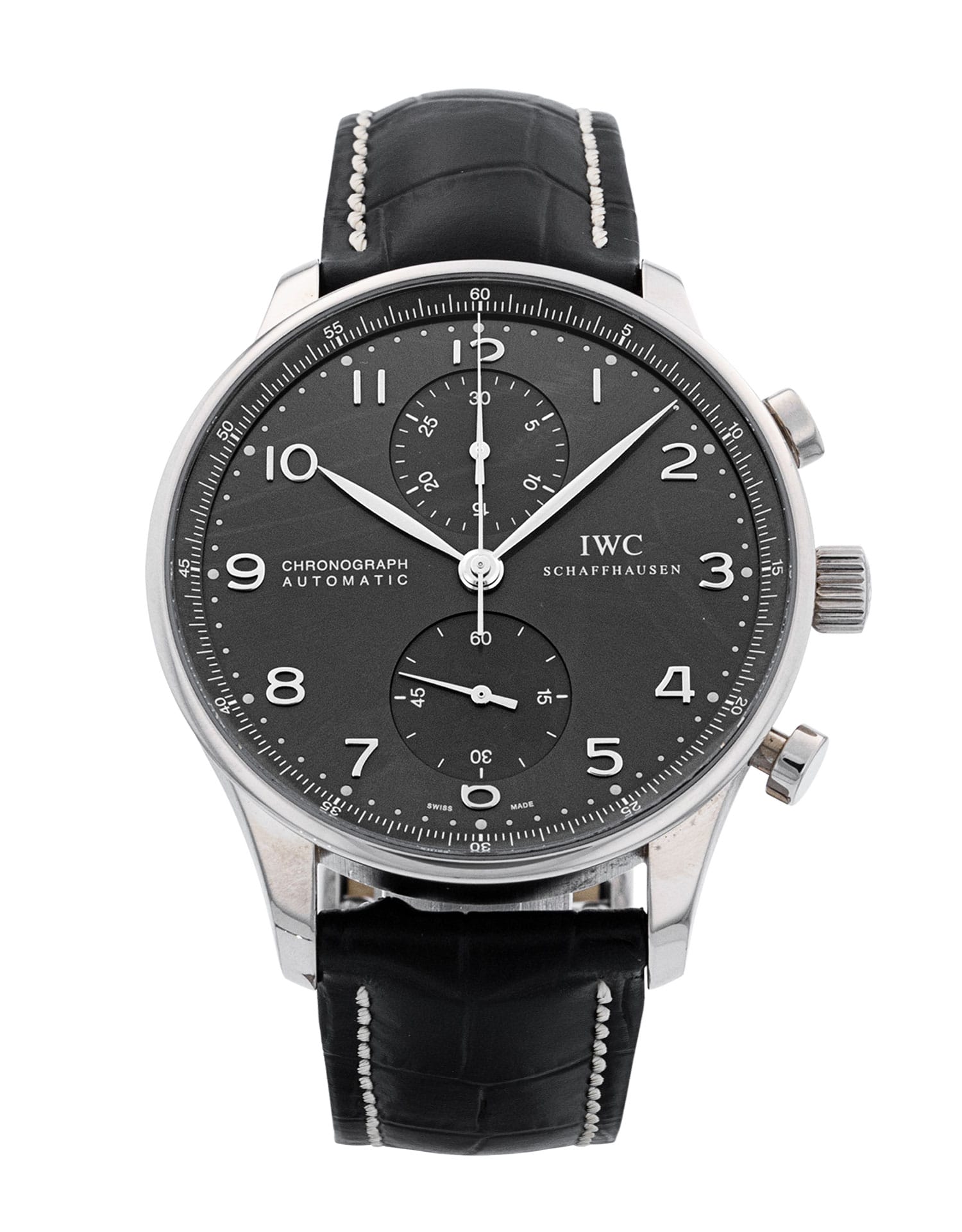 Cette IWC Portugieser Chrono IW371431 a un cadran de arabe gris et un bracelet en cuir. La précision, le bon fonctionnement et l'état de cette IWC ont été minutieusement inspectés dans notre centre de réparation IWC certifié afin de déterminer le degré de remise en état requis pour répondre à nos normes strictes. Elle a également été comparée à nos archives afin de garantir son authenticité. Pour votre tranquillité d'esprit, toutes nos montres s'accompagnent d'une garantie de 24 mois.
