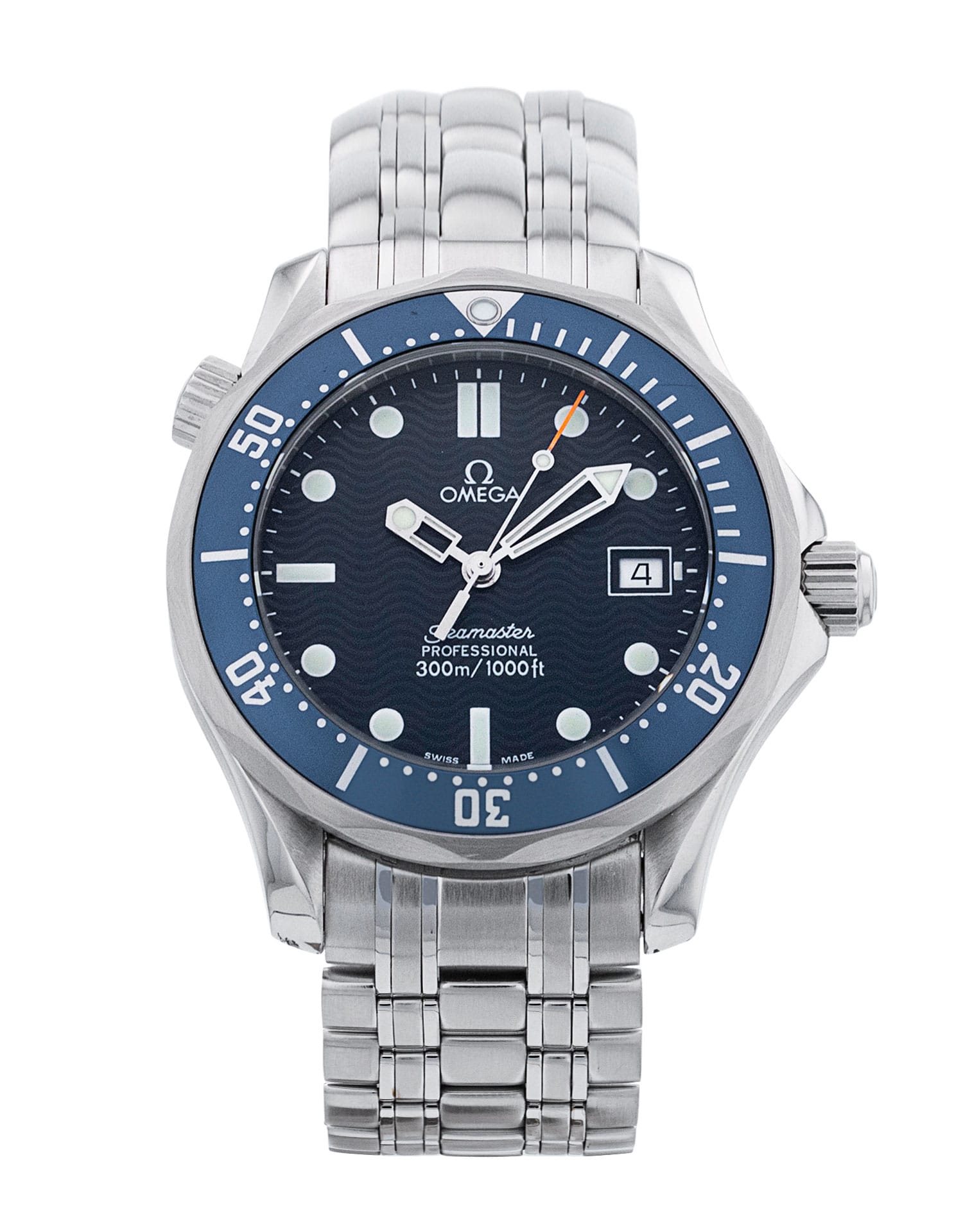 Cette Omega Seamaster 300m Mid-Size 2561.80.00 a un cadran de bleu et un bracelet en bracelet. La précision, le bon fonctionnement et l'état de cette Omega ont été minutieusement inspectés dans notre centre de réparation Omega certifié afin de déterminer le degré de remise en état requis pour répondre à nos normes strictes. Elle a également été comparée à nos archives afin de garantir son authenticité. Pour votre tranquillité d'esprit, toutes nos montres s'accompagnent d'une garantie de 24 mois.