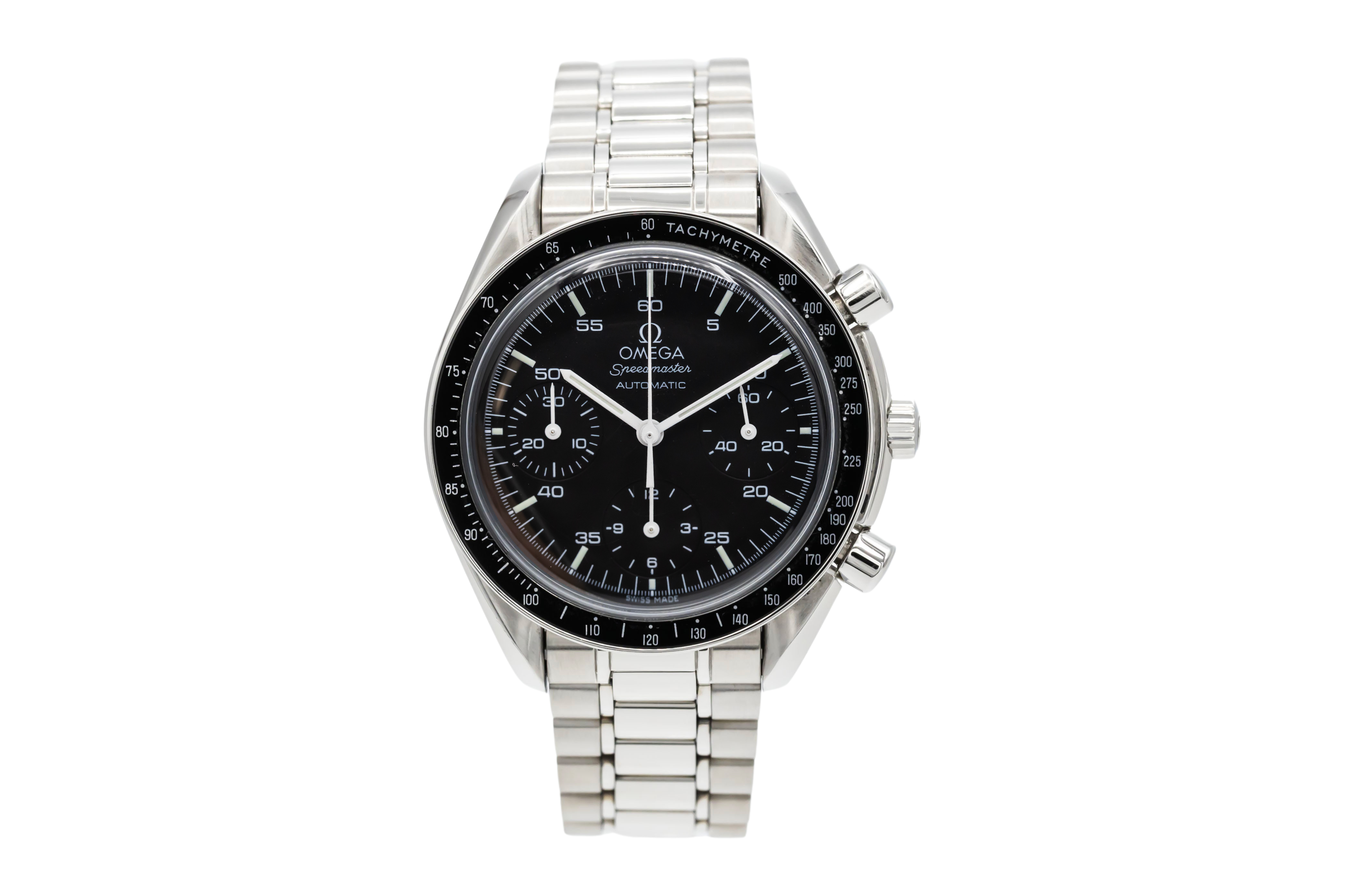 Cette Omega Speedmaster Reduced 3510.50.00 a un cadran de baton noire et un bracelet en bracelet. La précision, le bon fonctionnement et l'état de cette Omega ont été minutieusement inspectés dans notre centre de réparation Omega certifié afin de déterminer le degré de remise en état requis pour répondre à nos normes strictes. Elle a également été comparée à nos archives afin de garantir son authenticité. Pour votre tranquillité d'esprit, toutes nos montres s'accompagnent d'une garantie de 24 mois.