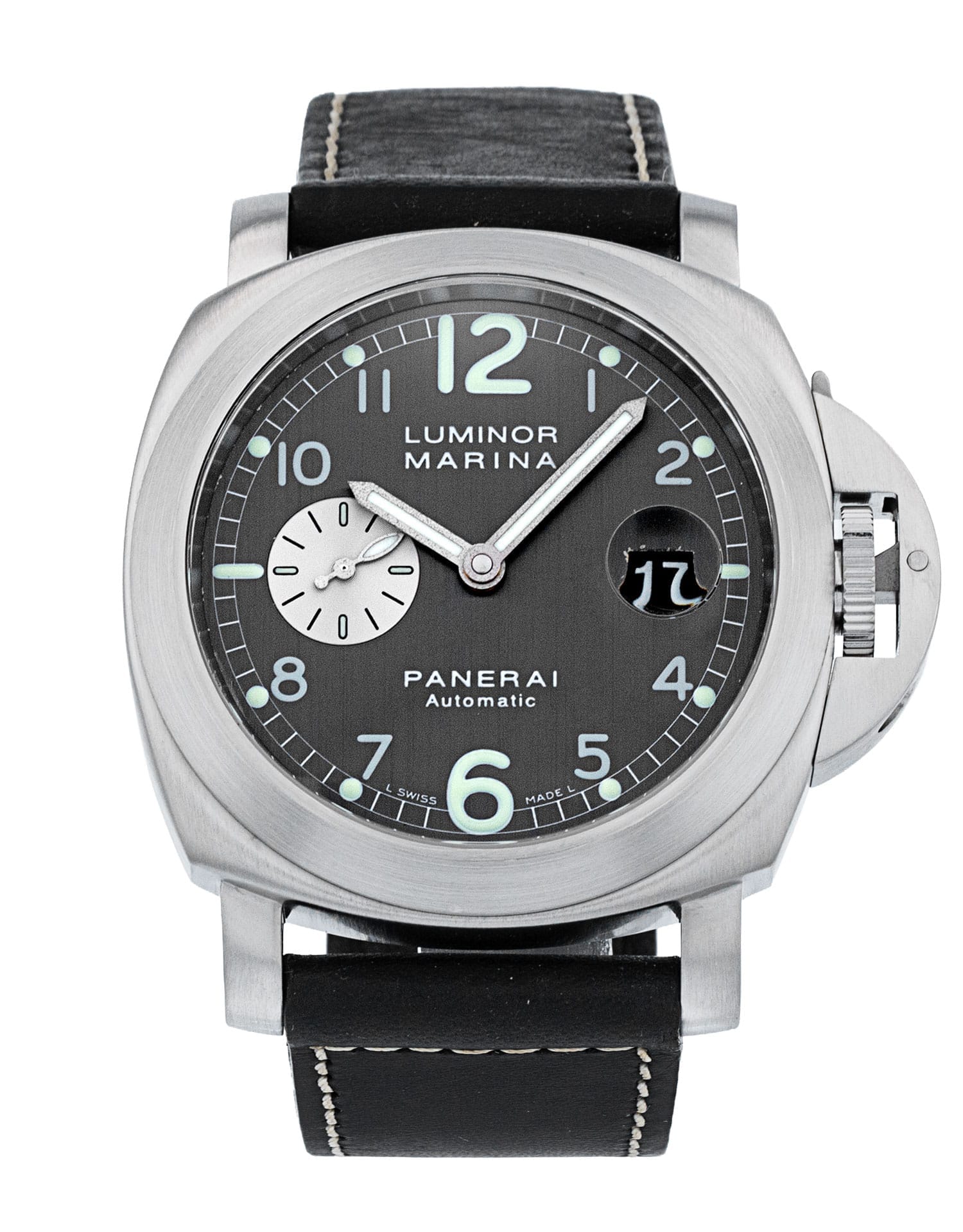 Cette Panerai Luminor Marina PAM00086 a un cadran de anthracite et un bracelet en cuir. La précision, le bon fonctionnement et l'état de cette Panerai ont été minutieusement inspectés dans notre centre de réparation Panerai certifié afin de déterminer le degré de remise en état requis pour répondre à nos normes strictes. Elle a également été comparée à nos archives afin de garantir son authenticité. Pour votre tranquillité d'esprit, toutes nos montres s'accompagnent d'une garantie de 24 mois.
