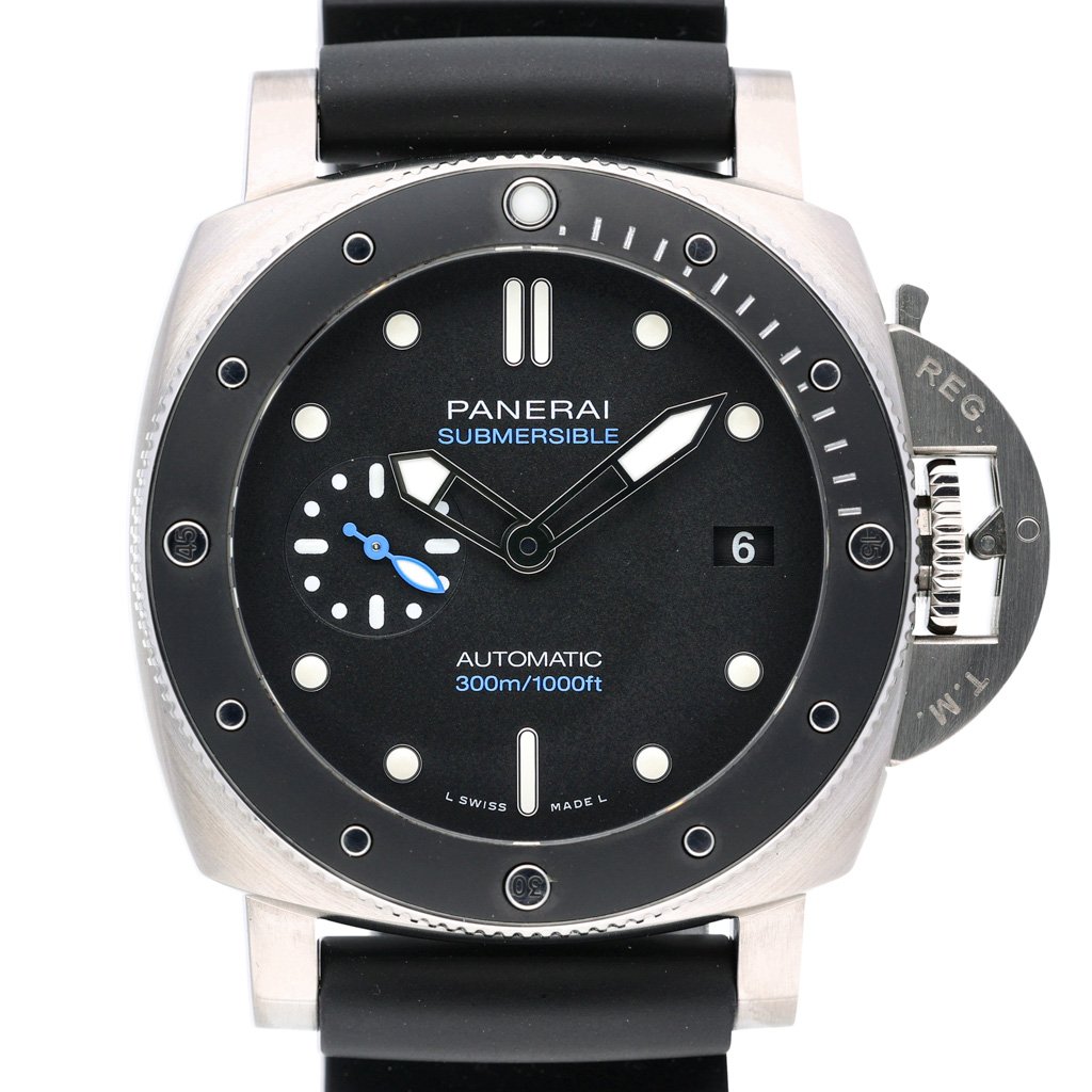 Cette Panerai Submersible PAM00683 a un cadran de noir et un bracelet en caoutchouc. La précision, le bon fonctionnement et l'état de cette Panerai ont été minutieusement inspectés dans notre centre de réparation Panerai certifié afin de déterminer le degré de remise en état requis pour répondre à nos normes strictes. Elle a également été comparée à nos archives afin de garantir son authenticité. Pour votre tranquillité d'esprit, toutes nos montres s'accompagnent d'une garantie de 24 mois.