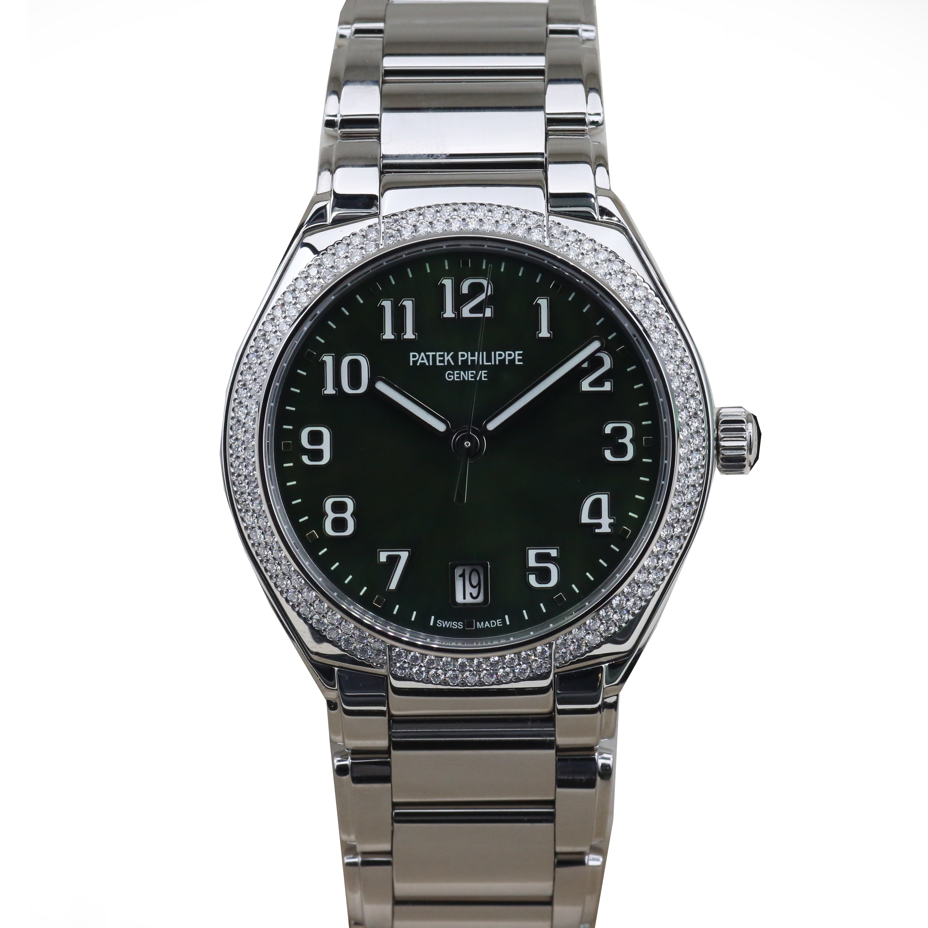 Cette Patek Philippe Twenty-4 7300/1200A-011 a un cadran de arabe vert et un bracelet en bracelet. L'imperméabilité, la précision, le bon fonctionnement et l'état de cette Patek Philippe ont été minutieusement inspectés afin de déterminer le degré de remise en état requis pour répondre à nos normes strictes. Nous avons également étudié sa documentation technique et les archives du fabricant, quand cela s'est avéré possible, afin de garantir l'authenticité de la montre et son passé irréprochable. Pour votre tranquillité d'esprit, toutes nos montres s'accompagnent d'une garantie de 24 mois.
