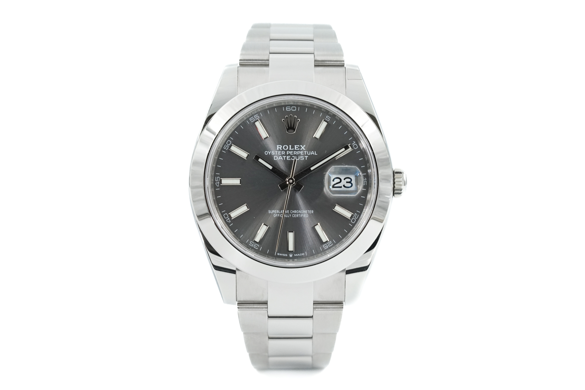 Cette Rolex Datejust 41 126300 a un cadran de ardoise baton et un bracelet en bracelet. L'imperméabilité, la précision, le bon fonctionnement et l'état de cette Rolex ont été minutieusement inspectés afin de déterminer le degré de remise en état requis pour répondre à nos normes strictes. Nous avons également étudié sa documentation technique et les archives du fabricant, quand cela s'est avéré possible, afin de garantir l'authenticité de la montre et son passé irréprochable. Pour votre tranquillité d'esprit, nos montres s'accompagnent d'une garantie de 24 mois, ainsi que de toute période restante sur la garantie du fabricant couvrant un produit neuf ou révisé. Afin de préserver la garantie du fabricant, cette montre n’a pas été polie dans notre centre de service.