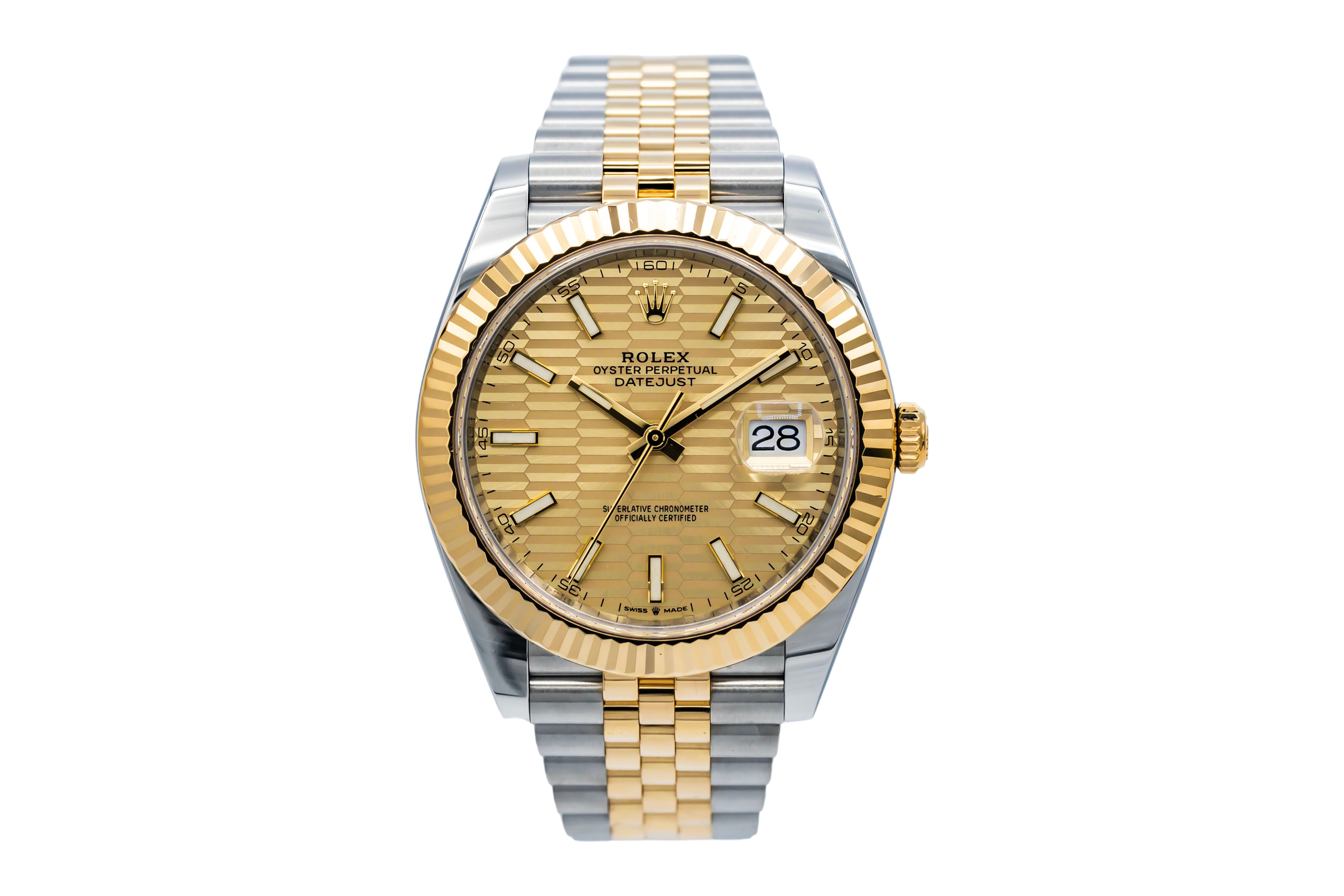 Cette Rolex Datejust 41 126333 a un cadran de motif cannelé doré et un bracelet en bracelet. L'imperméabilité, la précision, le bon fonctionnement et l'état de cette Rolex ont été minutieusement inspectés afin de déterminer le degré de remise en état requis pour répondre à nos normes strictes. Nous avons également étudié sa documentation technique et les archives du fabricant, quand cela s'est avéré possible, afin de garantir l'authenticité de la montre et son passé irréprochable. Pour votre tranquillité d'esprit, nos montres s'accompagnent d'une garantie de 24 mois, ainsi que de toute période restante sur la garantie du fabricant couvrant un produit neuf ou révisé. Afin de préserver la garantie du fabricant, cette montre n’a pas été polie dans notre centre de service.