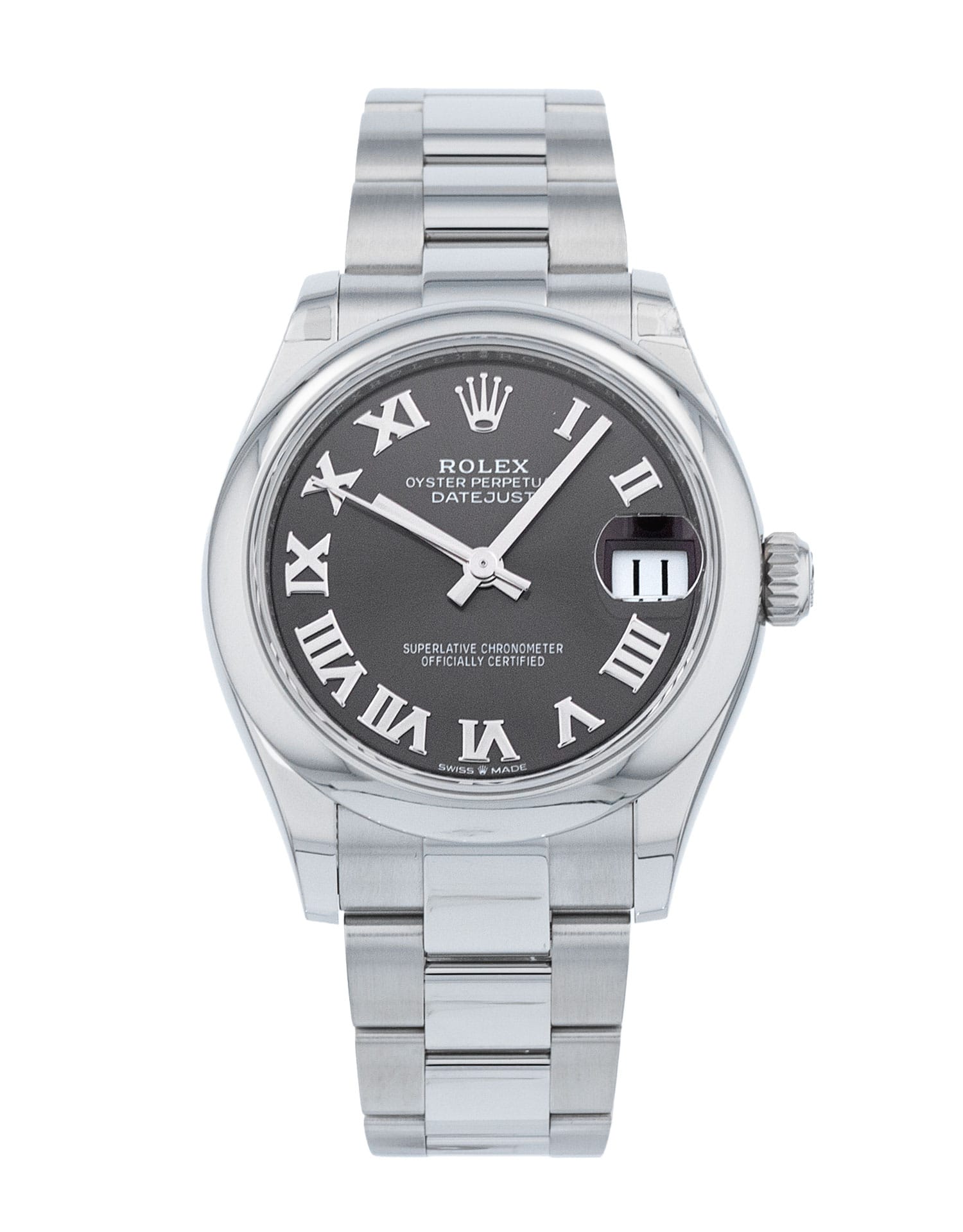 Cette Rolex Datejust Lady 31 278240 a un cadran de dark grey roman numeral et un bracelet en bracelet. L'imperméabilité, la précision, le bon fonctionnement et l'état de cette Rolex ont été minutieusement inspectés afin de déterminer le degré de remise en état requis pour répondre à nos normes strictes. Nous avons également étudié sa documentation technique et les archives du fabricant, quand cela s'est avéré possible, afin de garantir l'authenticité de la montre et son passé irréprochable. Pour votre tranquillité d'esprit, nos montres s'accompagnent d'une garantie de 24 mois, ainsi que de toute période restante sur la garantie du fabricant couvrant un produit neuf ou révisé. Afin de préserver la garantie du fabricant, cette montre n’a pas été polie dans notre centre de service.