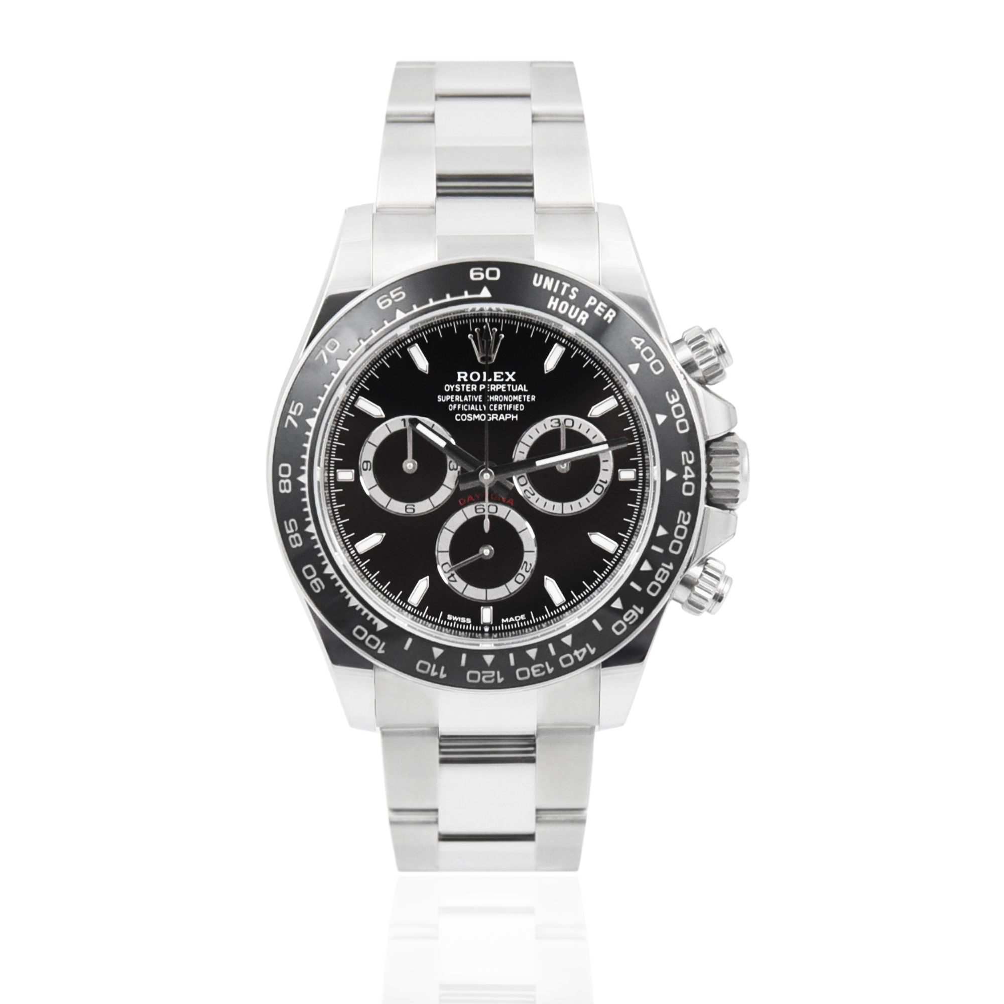 Cette Rolex Daytona 126500 LN a un cadran de noir et un bracelet en bracelet. L'imperméabilité, la précision, le bon fonctionnement et l'état de cette Rolex ont été minutieusement inspectés afin de déterminer le degré de remise en état requis pour répondre à nos normes strictes. Nous avons également étudié sa documentation technique et les archives du fabricant, quand cela s'est avéré possible, afin de garantir l'authenticité de la montre et son passé irréprochable. Pour votre tranquillité d'esprit, nos montres s'accompagnent d'une garantie de 24 mois, ainsi que de toute période restante sur la garantie du fabricant couvrant un produit neuf ou révisé. Afin de préserver la garantie du fabricant, cette montre n’a pas été polie dans notre centre de service.