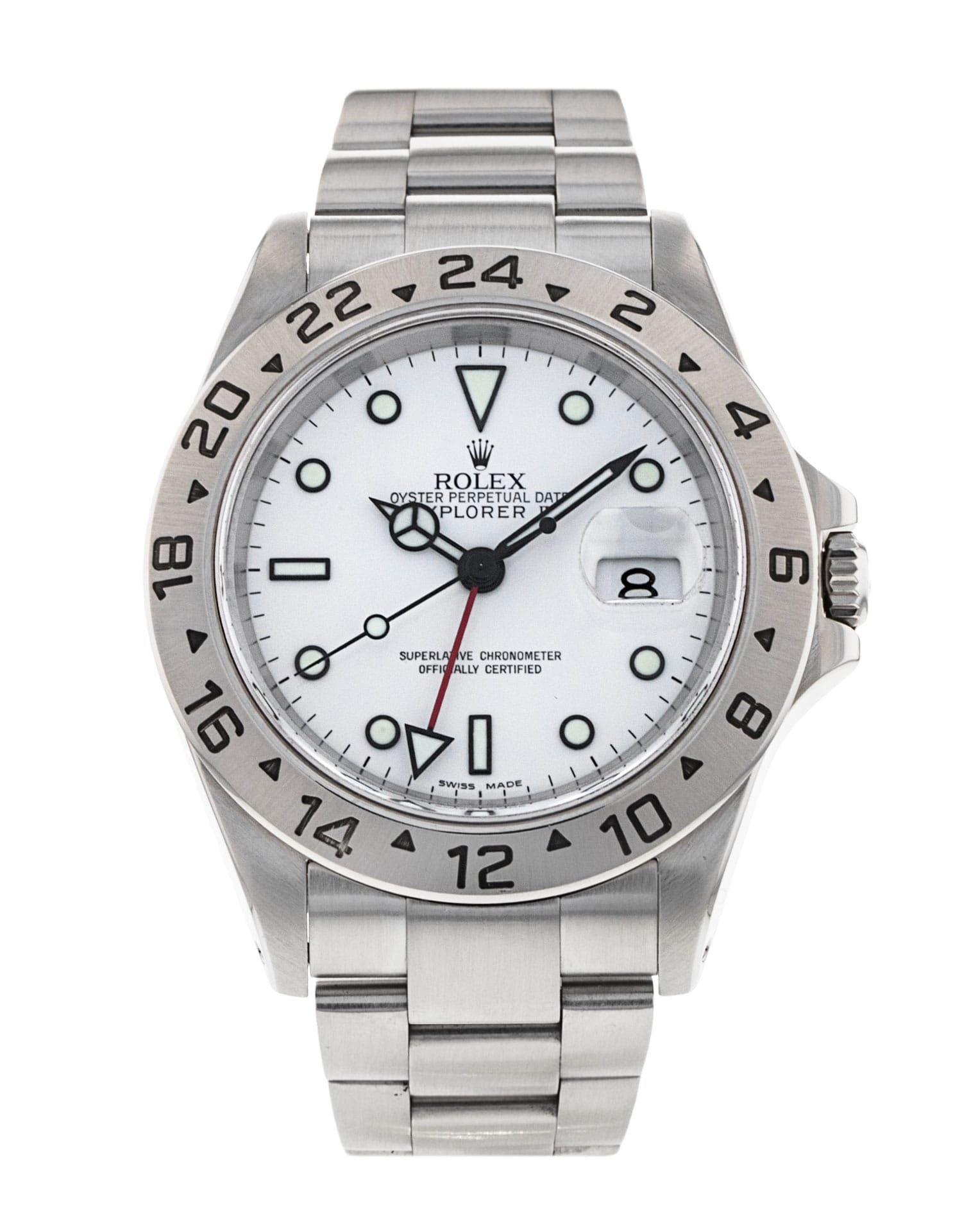 Cette Rolex Explorer II 16570 a un cadran de blanc et un bracelet en bracelet. L'imperméabilité, la précision, le bon fonctionnement et l'état de cette Rolex ont été minutieusement inspectés afin de déterminer le degré de remise en état requis pour répondre à nos normes strictes. Nous avons également étudié sa documentation technique et les archives du fabricant, quand cela s'est avéré possible, afin de garantir l'authenticité de la montre et son passé irréprochable. Pour votre tranquillité d'esprit, toutes nos montres s'accompagnent d'une garantie de 24 mois. L’un de nos techniciens spécialisés dans le polissage a éliminé les marques d’usure quotidienne sur le boîtier et le bracelet de cette montre. Par conséquent, cette montre n’est pas couverte par la garantie restante du fabricant.