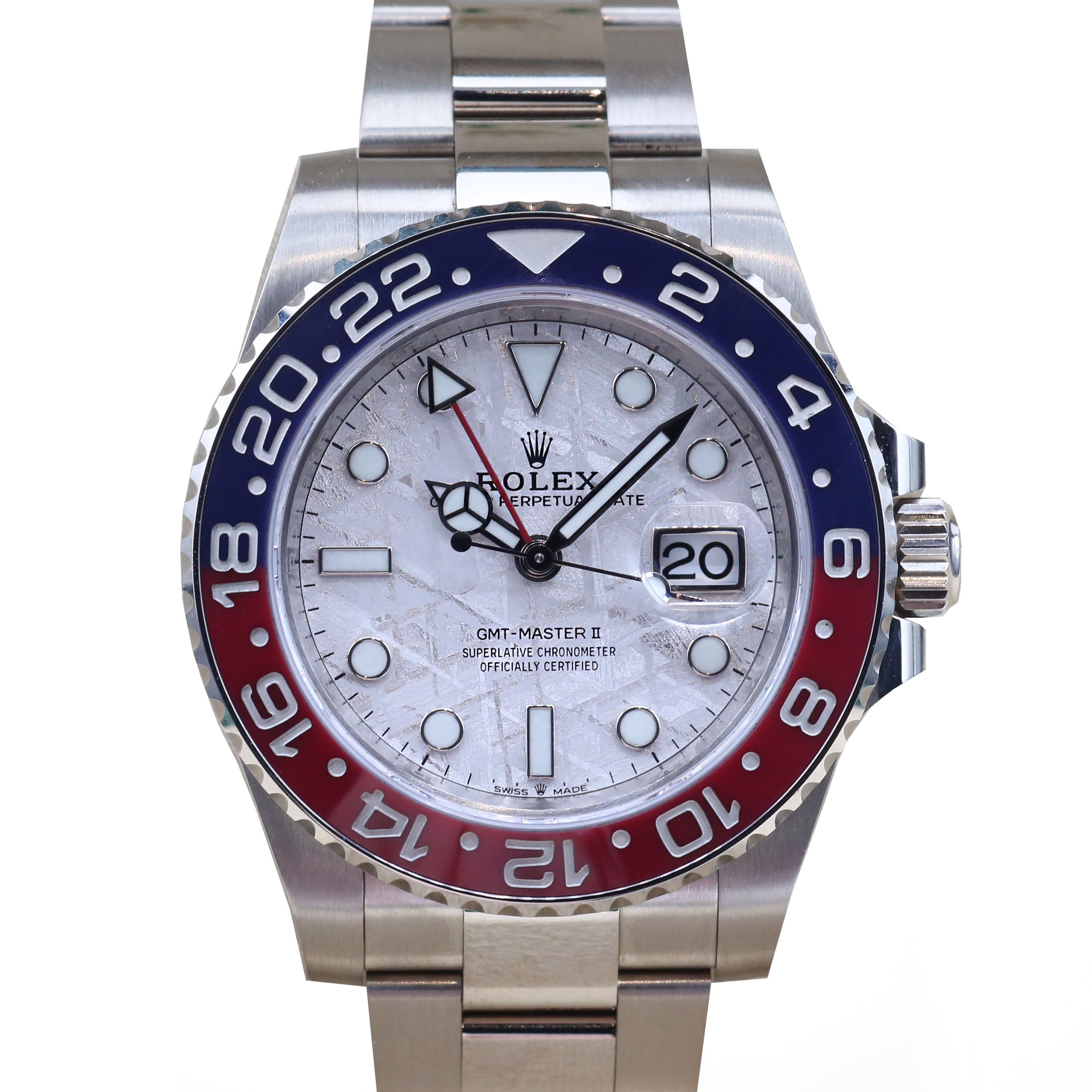 Cette Rolex GMT Master II 126719 BLRO a un cadran de meteorite et un bracelet en bracelet. L'imperméabilité, la précision, le bon fonctionnement et l'état de cette Rolex ont été minutieusement inspectés afin de déterminer le degré de remise en état requis pour répondre à nos normes strictes. Nous avons également étudié sa documentation technique et les archives du fabricant, quand cela s'est avéré possible, afin de garantir l'authenticité de la montre et son passé irréprochable. Pour votre tranquillité d'esprit, toutes nos montres s'accompagnent d'une garantie de 24 mois. L’un de nos techniciens spécialisés dans le polissage a éliminé les marques d’usure quotidienne sur le boîtier et le bracelet de cette montre. Par conséquent, cette montre n’est pas couverte par la garantie restante du fabricant.