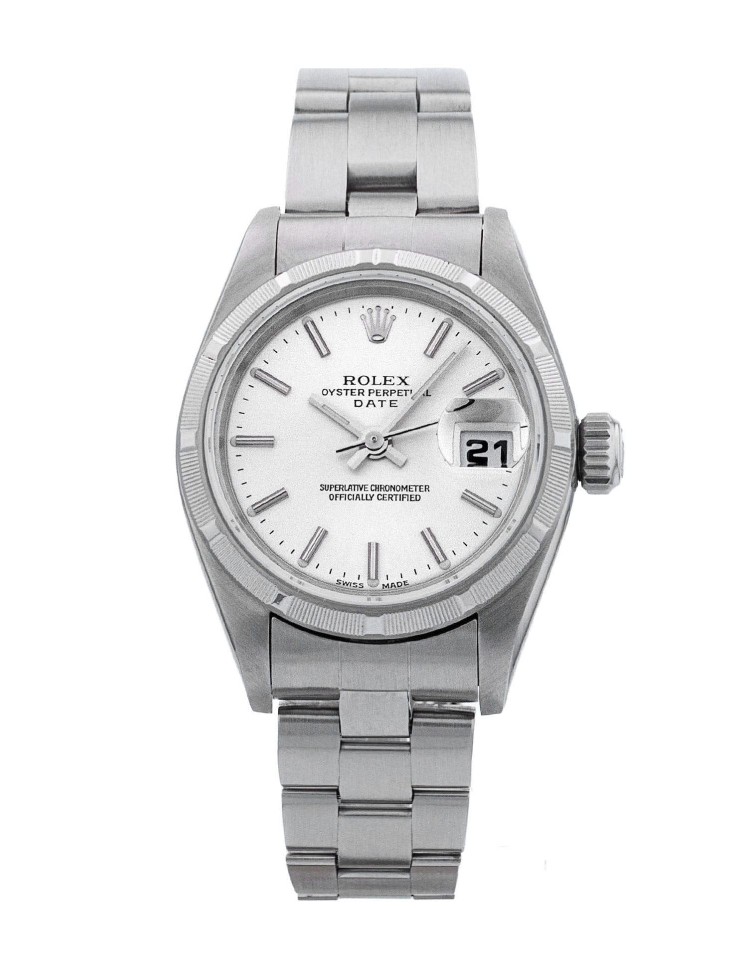 Cette Rolex Lady Oyster Perpetual 79240 a un cadran de baton argentée et un bracelet en bracelet. L'imperméabilité, la précision, le bon fonctionnement et l'état de cette Rolex ont été minutieusement inspectés afin de déterminer le degré de remise en état requis pour répondre à nos normes strictes. Nous avons également étudié sa documentation technique et les archives du fabricant, quand cela s'est avéré possible, afin de garantir l'authenticité de la montre et son passé irréprochable. Pour votre tranquillité d'esprit, toutes nos montres s'accompagnent d'une garantie de 24 mois. L’un de nos techniciens spécialisés dans le polissage a éliminé les marques d’usure quotidienne sur le boîtier et le bracelet de cette montre. Par conséquent, cette montre n’est pas couverte par la garantie restante du fabricant.