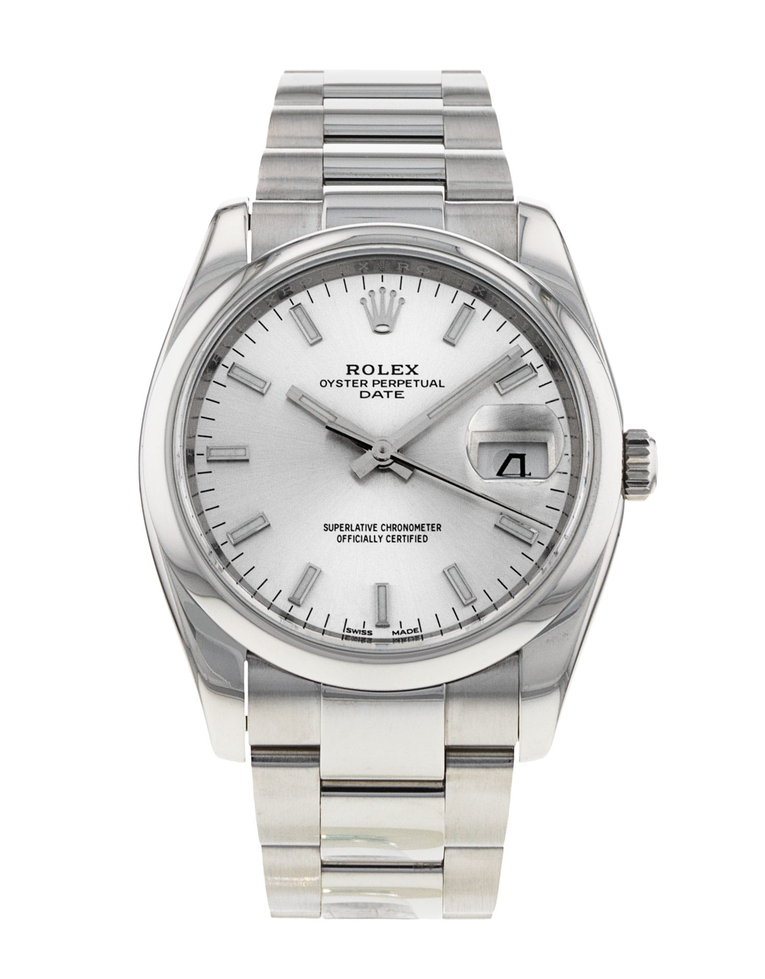 Cette Rolex Oyster Perpetual Date 115200 a un cadran de baton argentée et un bracelet en bracelet. L'imperméabilité, la précision, le bon fonctionnement et l'état de cette Rolex ont été minutieusement inspectés afin de déterminer le degré de remise en état requis pour répondre à nos normes strictes. Nous avons également étudié sa documentation technique et les archives du fabricant, quand cela s'est avéré possible, afin de garantir l'authenticité de la montre et son passé irréprochable. Pour votre tranquillité d'esprit, toutes nos montres s'accompagnent d'une garantie de 24 mois. L’un de nos techniciens spécialisés dans le polissage a éliminé les marques d’usure quotidienne sur le boîtier et le bracelet de cette montre. Par conséquent, cette montre n’est pas couverte par la garantie restante du fabricant.