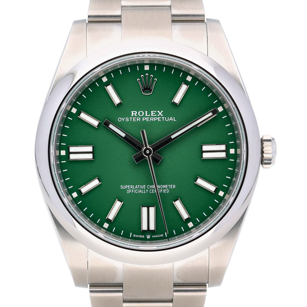 Cette Rolex Oyster Perpetual 124300 a un cadran de baton verte et un bracelet en bracelet. L'imperméabilité, la précision, le bon fonctionnement et l'état de cette Rolex ont été minutieusement inspectés afin de déterminer le degré de remise en état requis pour répondre à nos normes strictes. Nous avons également étudié sa documentation technique et les archives du fabricant, quand cela s'est avéré possible, afin de garantir l'authenticité de la montre et son passé irréprochable. Pour votre tranquillité d'esprit, nos montres s'accompagnent d'une garantie de 24 mois, ainsi que de toute période restante sur la garantie du fabricant couvrant un produit neuf ou révisé. Afin de préserver la garantie du fabricant, cette montre n’a pas été polie dans notre centre de service.