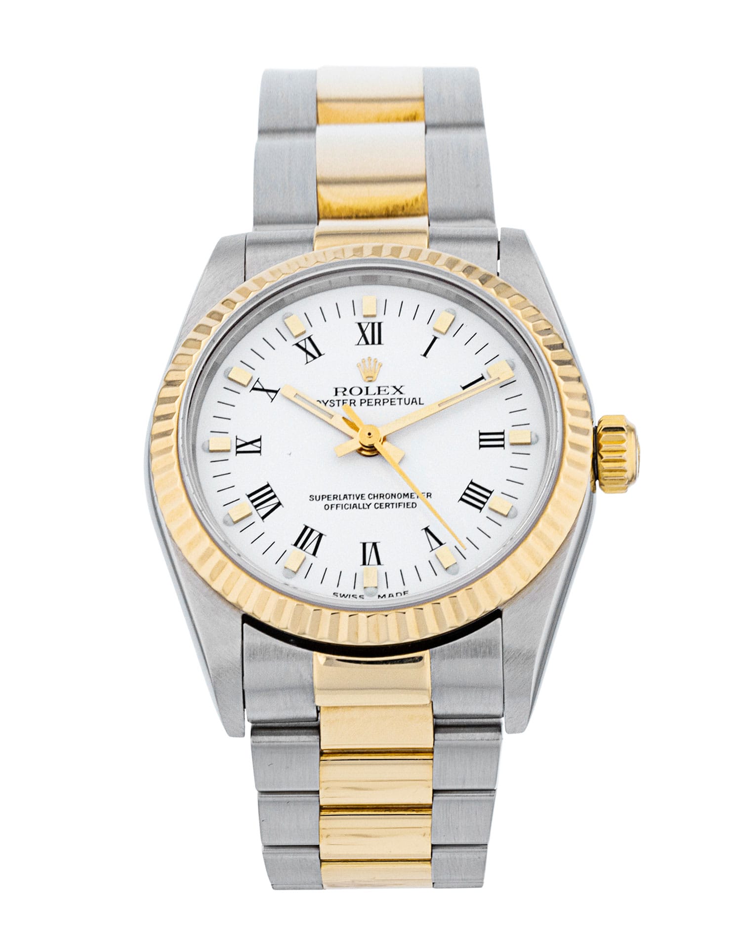 Cette Rolex Oyster Perpetual 77513 a un cadran de blanc à chiffres romains et un bracelet en bracelet. L'imperméabilité, la précision, le bon fonctionnement et l'état de cette Rolex ont été minutieusement inspectés afin de déterminer le degré de remise en état requis pour répondre à nos normes strictes. Nous avons également étudié sa documentation technique et les archives du fabricant, quand cela s'est avéré possible, afin de garantir l'authenticité de la montre et son passé irréprochable. Pour votre tranquillité d'esprit, toutes nos montres s'accompagnent d'une garantie de 24 mois. L’un de nos techniciens spécialisés dans le polissage a éliminé les marques d’usure quotidienne sur le boîtier et le bracelet de cette montre. Par conséquent, cette montre n’est pas couverte par la garantie restante du fabricant.