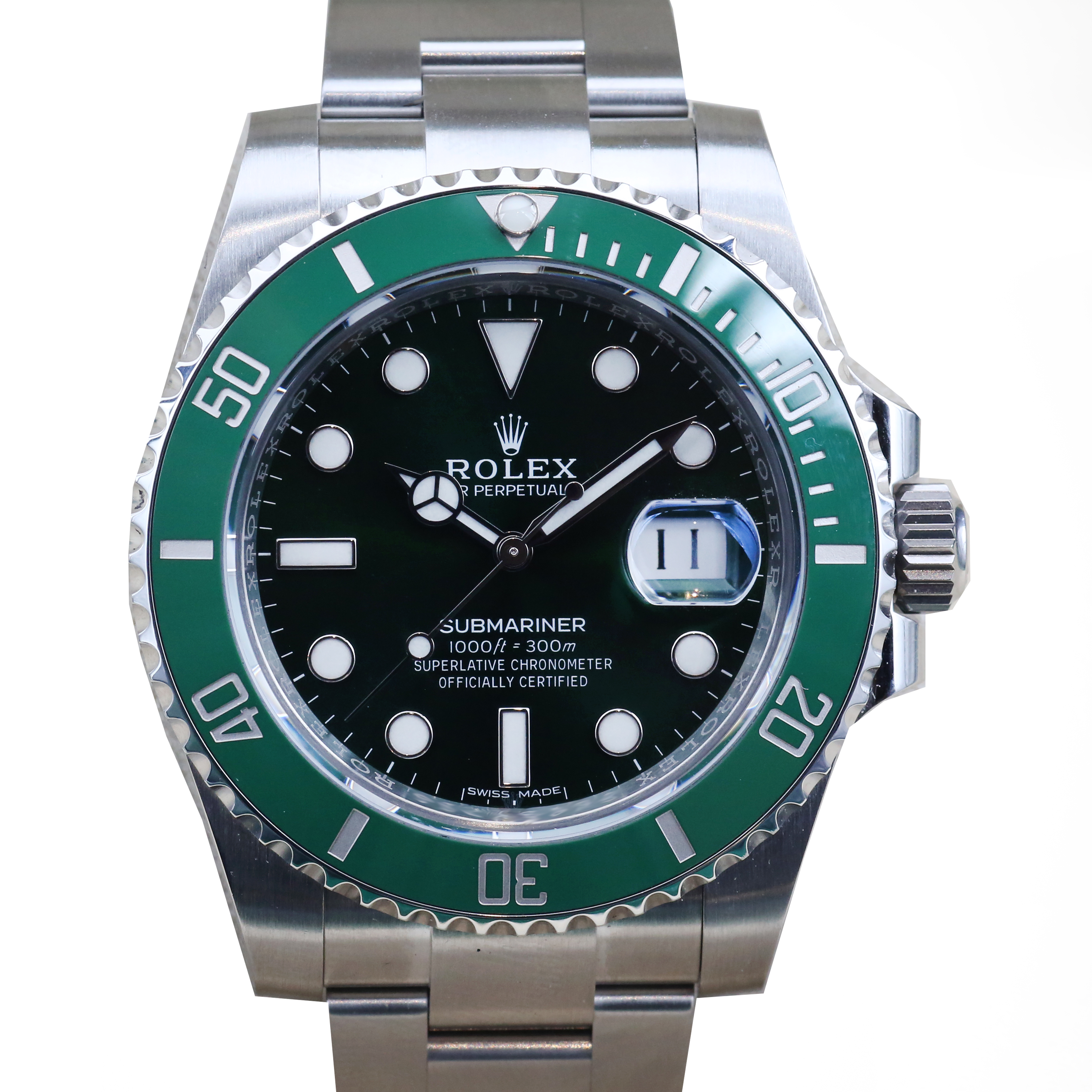 Cette montre n’est pas juste une Submariner classique — une des montres les plus emblématiques et populaires dans le monde — mais une édition variante remarquable et très à collectionner. La montre est facilement reconnaissable grâce à sa lunette verte rare et cadran, causant des collectionneurs pour lui donner le surnom affectueux de « Hulk », bien que lui-même LV peuplements pour Lunette Vert (« Green Bezel »). Cette version plus grande met à jour la précédente ref de modèle LV 16610 (appelé « Kermit ») qui a été initialement introduite en 2003 pour le 50e anniversaire de la Submariner. Cette édition offre plaquettes en céramique dans la lunette, avec des chiffres en platine.