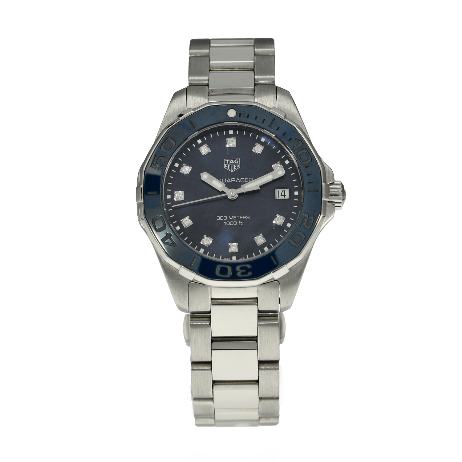 Cette Tag Heuer Aquaracer WAY131L.BA0748 a un cadran de diamant bleu et un bracelet en bracelet. La précision, le bon fonctionnement et l'état de cette Tag Heuer ont été minutieusement inspectés dans notre centre de réparation Tag Heuer certifié afin de déterminer le degré de remise en état requis pour répondre à nos normes strictes. Elle a également été comparée à nos archives afin de garantir son authenticité. Pour votre tranquillité d'esprit, toutes nos montres s'accompagnent d'une garantie de 24 mois.