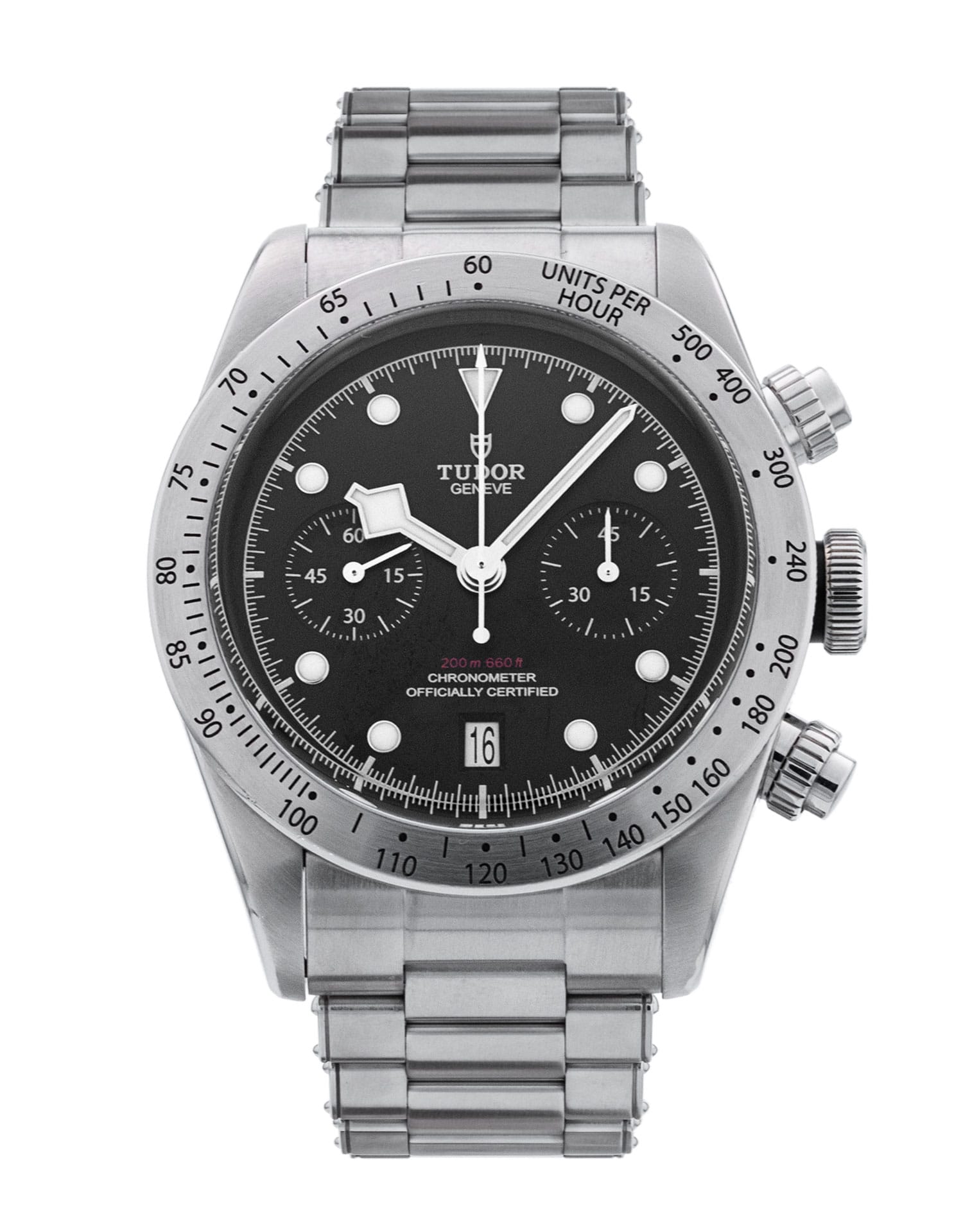 Cette Tudor Heritage Black Bay M79350-0001 a un cadran de noir et un bracelet en bracelet. L'imperméabilité, la précision, le bon fonctionnement et l'état de cette Tudor ont été minutieusement inspectés afin de déterminer le degré de remise en état requis pour répondre à nos normes strictes. Nous avons également étudié sa documentation technique et les archives du fabricant, quand cela s'est avéré possible, afin de garantir l'authenticité de la montre et son passé irréprochable. Pour votre tranquillité d'esprit, toutes nos montres s'accompagnent d'une garantie de 24 mois. L’un de nos techniciens spécialisés dans le polissage a éliminé les marques d’usure quotidienne sur le boîtier et le bracelet de cette montre. Par conséquent, cette montre n’est pas couverte par la garantie restante du fabricant.
